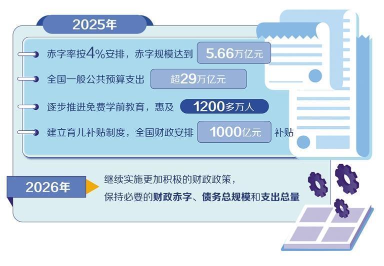 按照部署,2026年我国将会保持必要的财政赤字、债务总规模和支出总量。